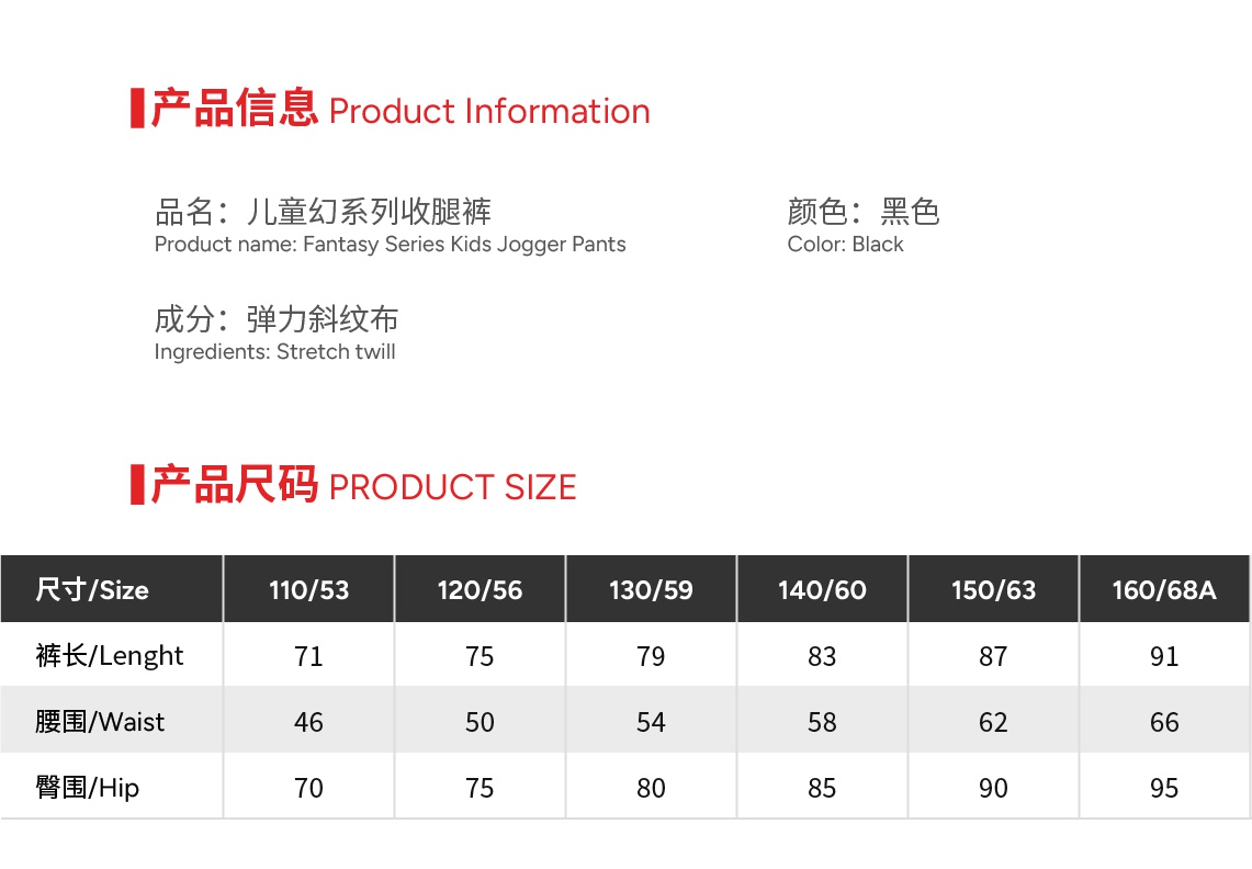 Size 110 or 120 or 130 or 140 or 150 or 160