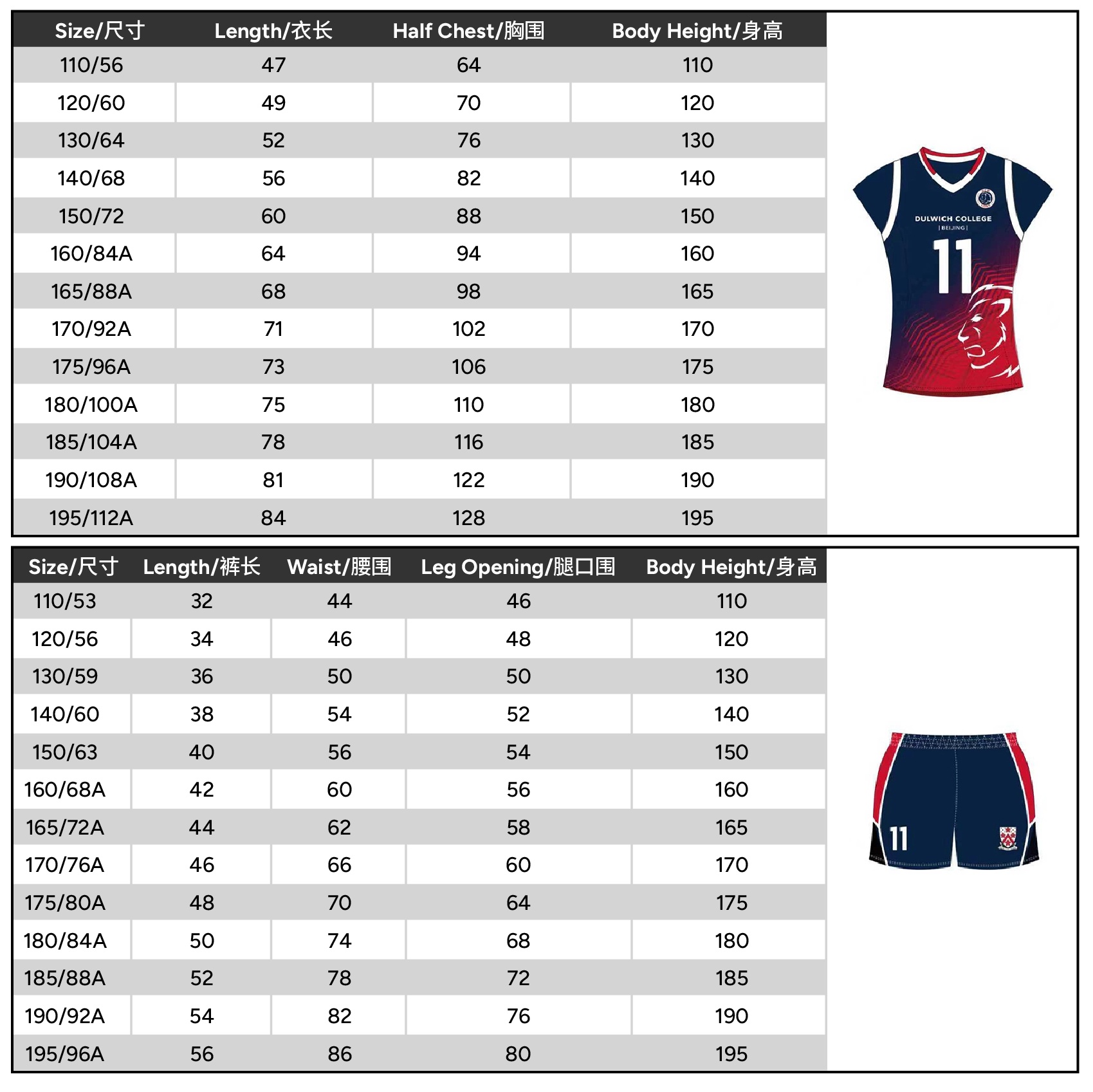 | Size | 110 or 120 or 130 or 140 or 150 or 160 or 165 or 170 or 175 or 180 or 185 or 190 or 195 |