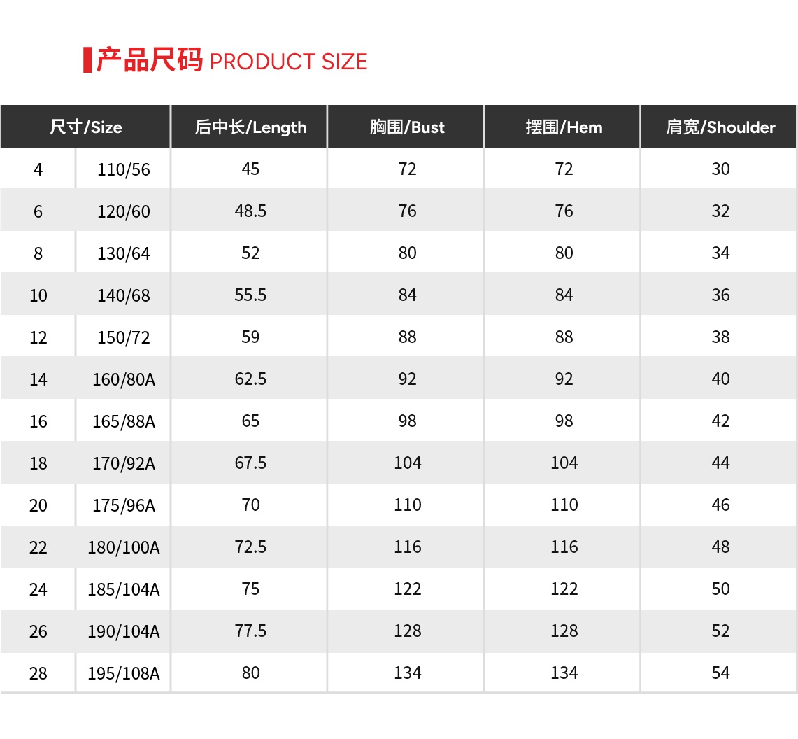| Size | 110 or 120 or 130 or 140 or 150 or 160 or 165 or 170 or 175 or 180 or 185 or 190 or 195 |