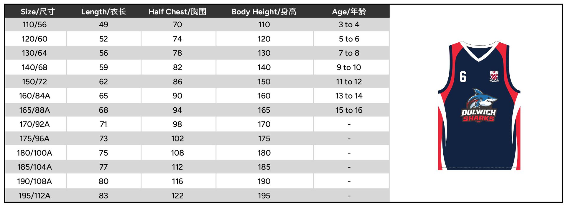 | Size | 110 or 120 or 130 or 140 or 150 or 160 or 165 or 170 or 175 or 180 or 185 or 190 or 195 |
