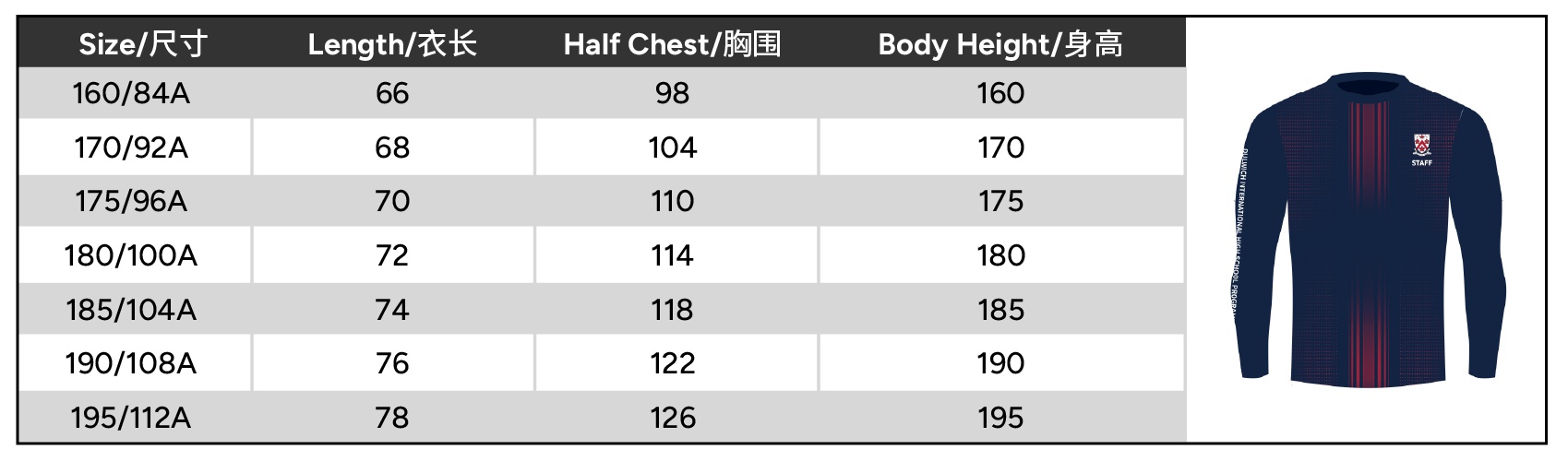 | Size | 160 or 170 or 175 or 180 or 185 or 190 or 195 |