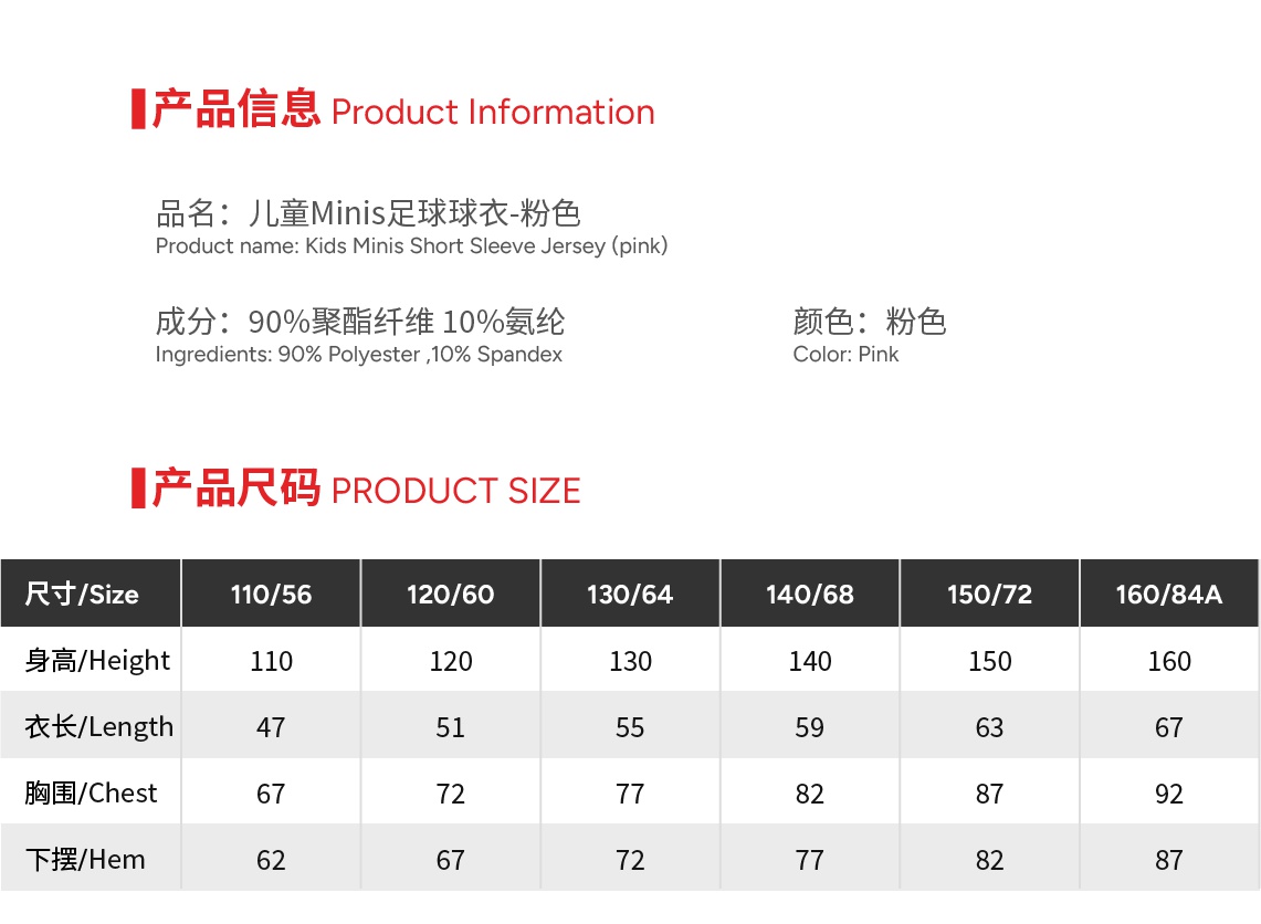 | Size | 110 or 120 or 130 or 140 or 150 or 160 |
