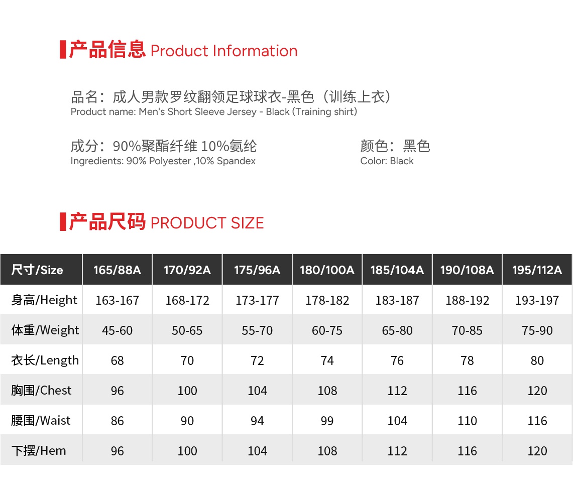 | Size | 165 or 170 or 175 or 180 or 185 or 190 or 195 |