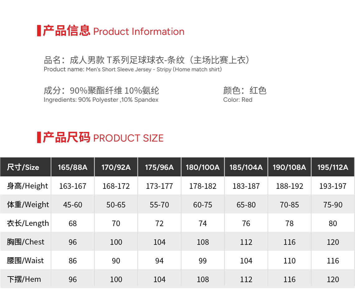 | Size | 165 or 170 or 175 or 180 or 185 or 190 or 195 |